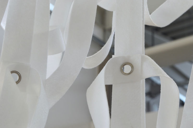 As a means to employ ambiguity, I endeavour to situate my work in a space between extremes, a kind of middle ground between opposing elements. I am not interested in a singular, central ideal. Instead I consider a series of sliding scales, along which my work sits. My starting point has been deconstructing the rigid minimalist grid and reconstructing it out of pliable materials, thereby playing with the boundaries between order and chaos, chance and determinacy, rigidity and fluidity, surface and sculpture, etc. Much inspiration has come from Karla Black and Leonor Antunes, whose works embrace material experience. I also aim to utilize the qualities of materials, but reject artificial colour and excessive manipulation, such that elements remain distinguishable. White is used principally for its affinity with the conventions of the white gallery space, for the work explores art itself.